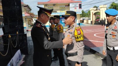 Luwu Utara, Sulawesi Selatan – Kapolres Luwu Utara, AKBP Muh Husni Ramli, memimpin upacara kenaikan pangkat pengabdian yang dirangkaikan dengan pemberian penghargaan kepada personel Polres Luwu Utara yang berprestasi. Acara ini berlangsung di Lapangan Apel Mapolres Luwu Utara, dihadiri oleh Wakapolres Luwu Utara Kompol Muh. A. Syafei, S.Sos., SH, Ketua Bhayangkari Cabang Luwu Utara, Ny. Wati Husni, serta Pejabat Utama Polres Luwu Utara, Kapolsek jajaran, perwira, bintara, dan Bhayangkari.