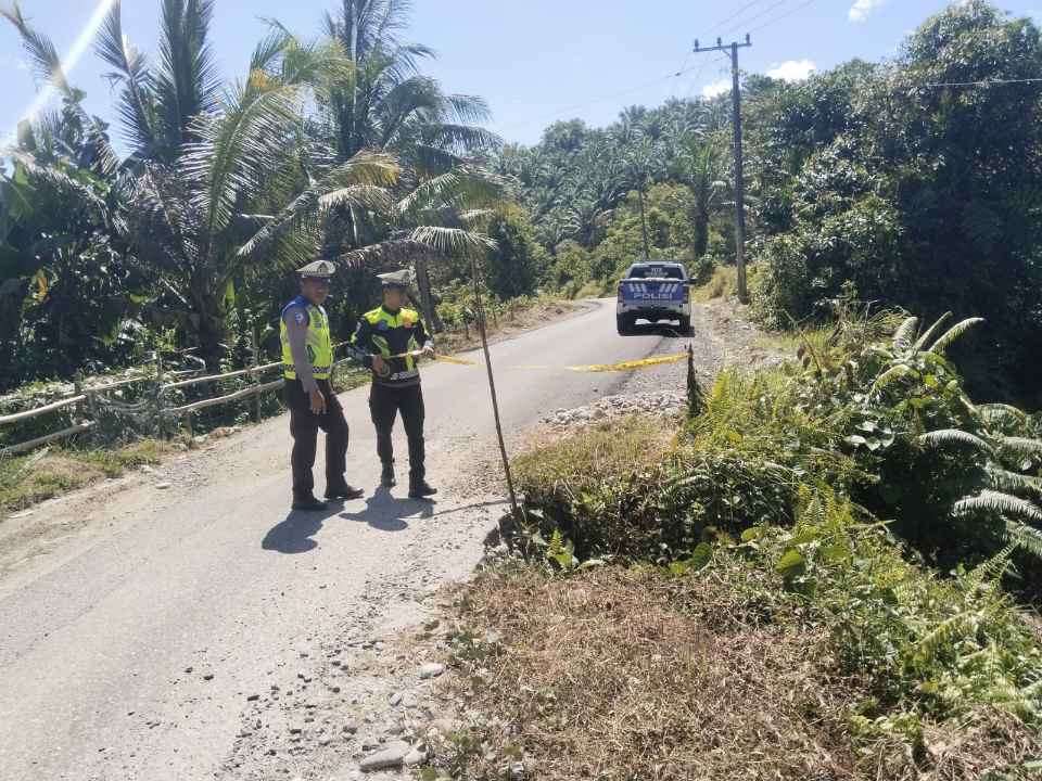 Patroli dan pemasangan police line dilaksanakan oleh personel Satlantas Polres Luwu Utara, yakni Aipda Muh. Kasim, Brigpol Muh. Alim, dan Brigpol Ridwan. Garis polisi dipasang di sepanjang sisi jalan yang berbatasan langsung dengan area terbuka dan kontur tanah yang tidak stabil sebagai tanda peringatan bagi pengendara yang melintas.