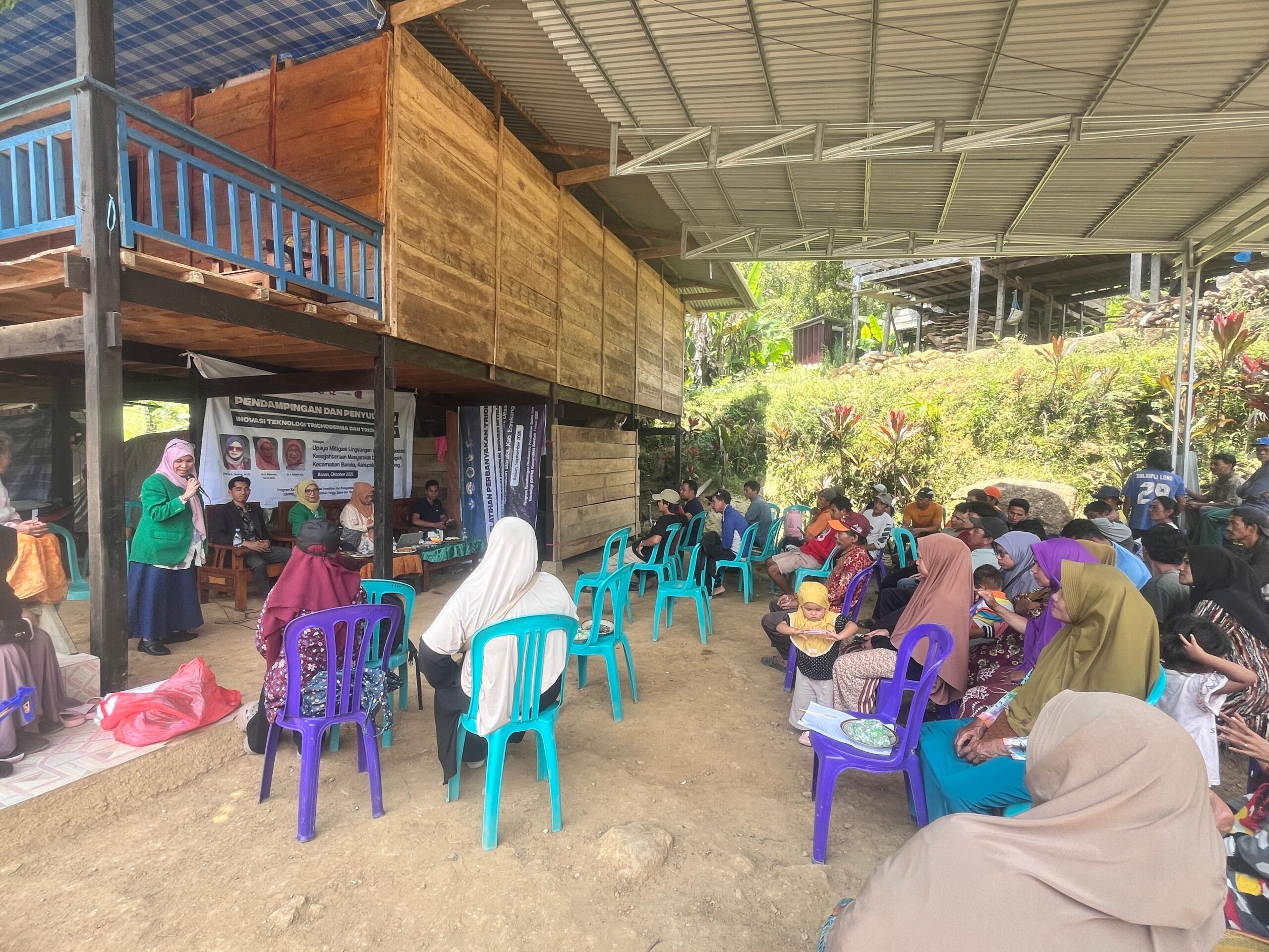 Lanskapsulawesi.com, Enrekang – Universitas Muhammadiyah Enrekang (UNIMEN) dan Universitas Muslim Indonesia (UMI) Makassar kolaborasi gelar Pendampingan dan Penyuluhan Inovasi Teknologi Trichoderma dan Trichokompos di Dusun Asaan, Kecamatan Baraka, Kabupaten Enrekang, Sabtu (11/10/2025).