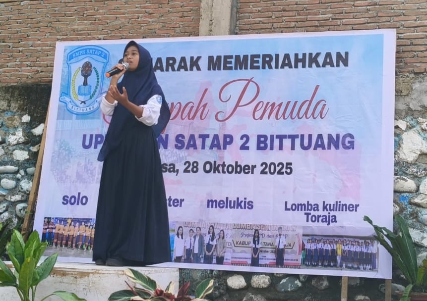 LANSKAPSULAWESI.COM – Bittuang, Dalam rangka memperingati Hari Sumpah Pemuda ke-97 pada 28 Oktober 2025, SMPN Satap 2 Bittuang menggelar berbagai kegiatan untuk membangkitkan semangat patriotisme di kalangan siswa.