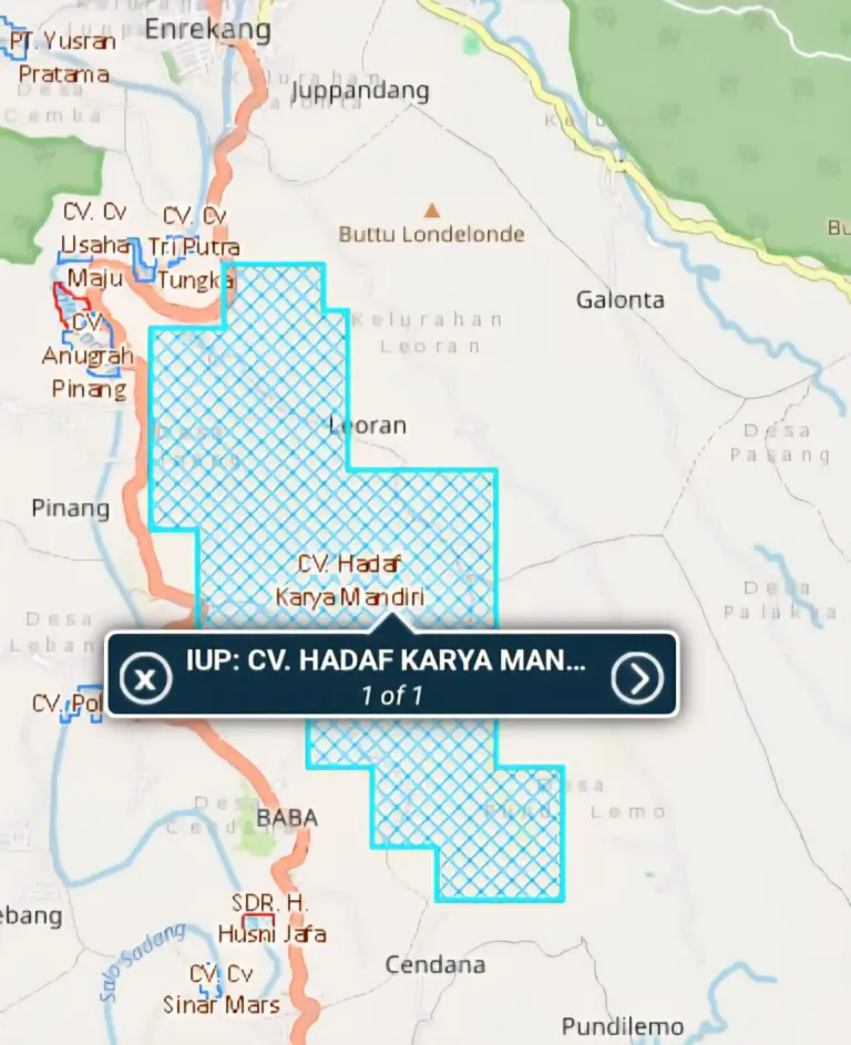 Lanskapsulawesi.com, Makassar – Masyarakat Kabupaten Enrekang dikejutkan oleh kabar rencana pembukaan lahan tambang emas seluas ± 1.711 hektare oleh CV Hadaf Karya Mandiri mencakup wilayah Kelurahan Leoran dan Ba’ka di Kecamatan Enrekang dan Kecamatan Cendana.
