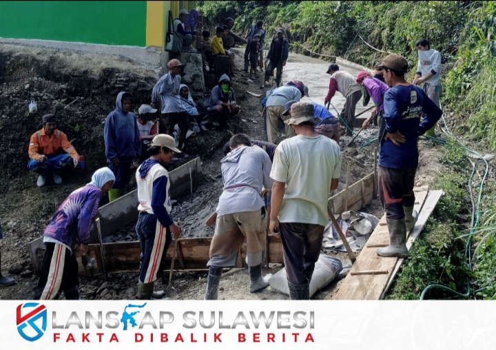 Lanskapsulawesi.com, Enrekang — Warga Dusun Wai-Wai, Desa Latimojong, Kecamat Buntu batu, melaksanakan gotong royong pengecoran beton jalan poros penghubung Desa Latimojong dan Desa Potokkullin secara swadaya. Sabtu (18/04/2026).